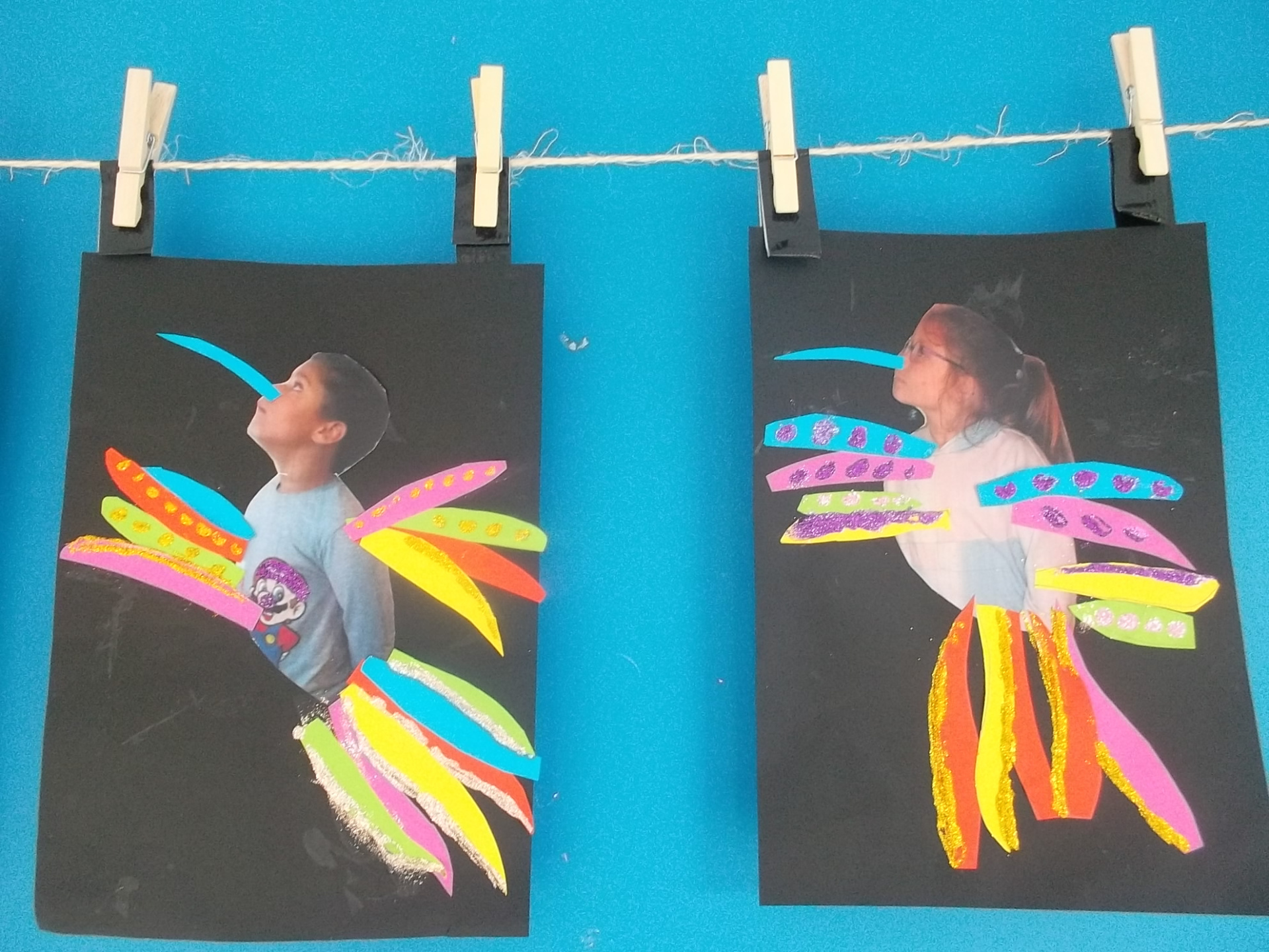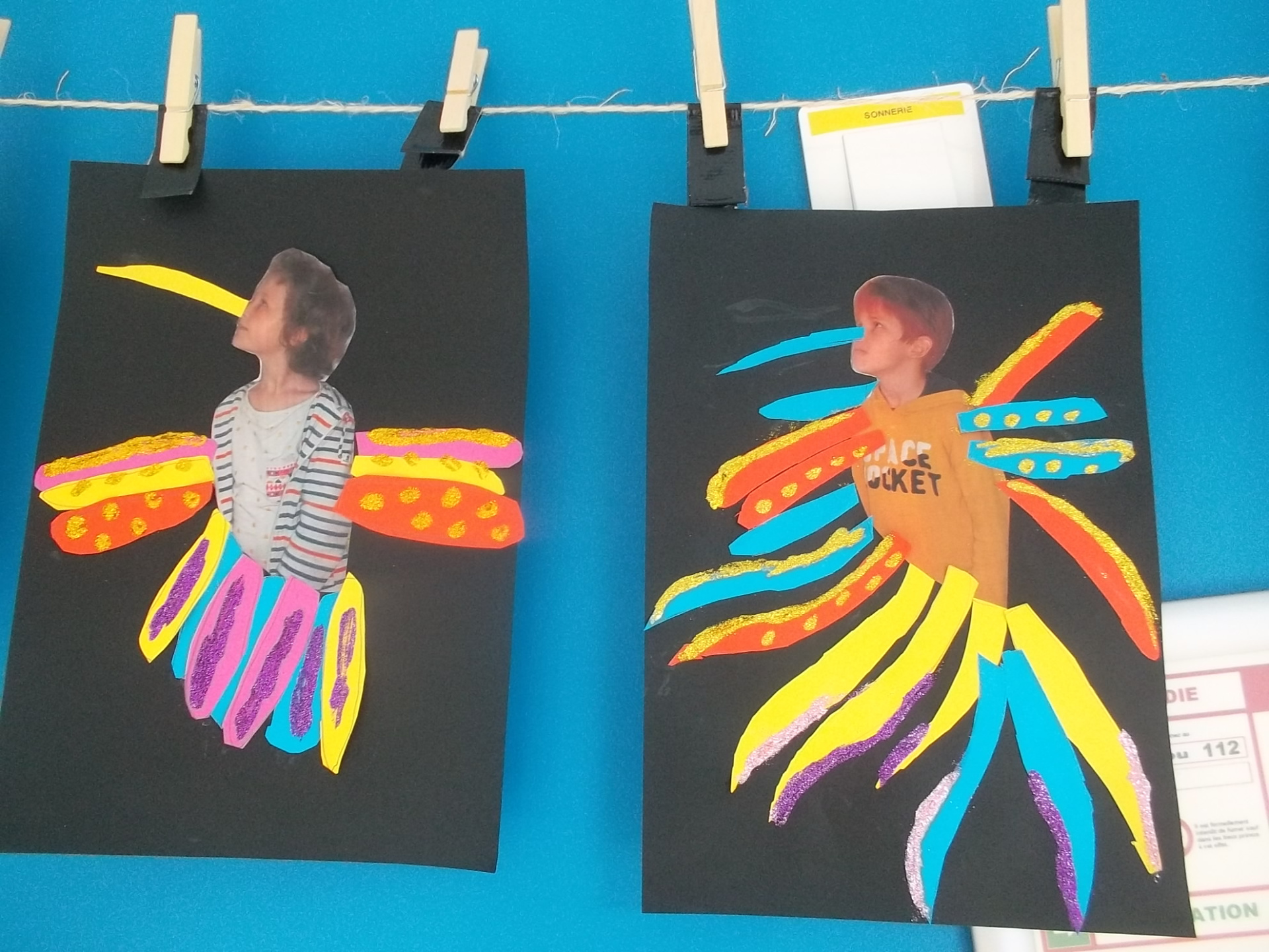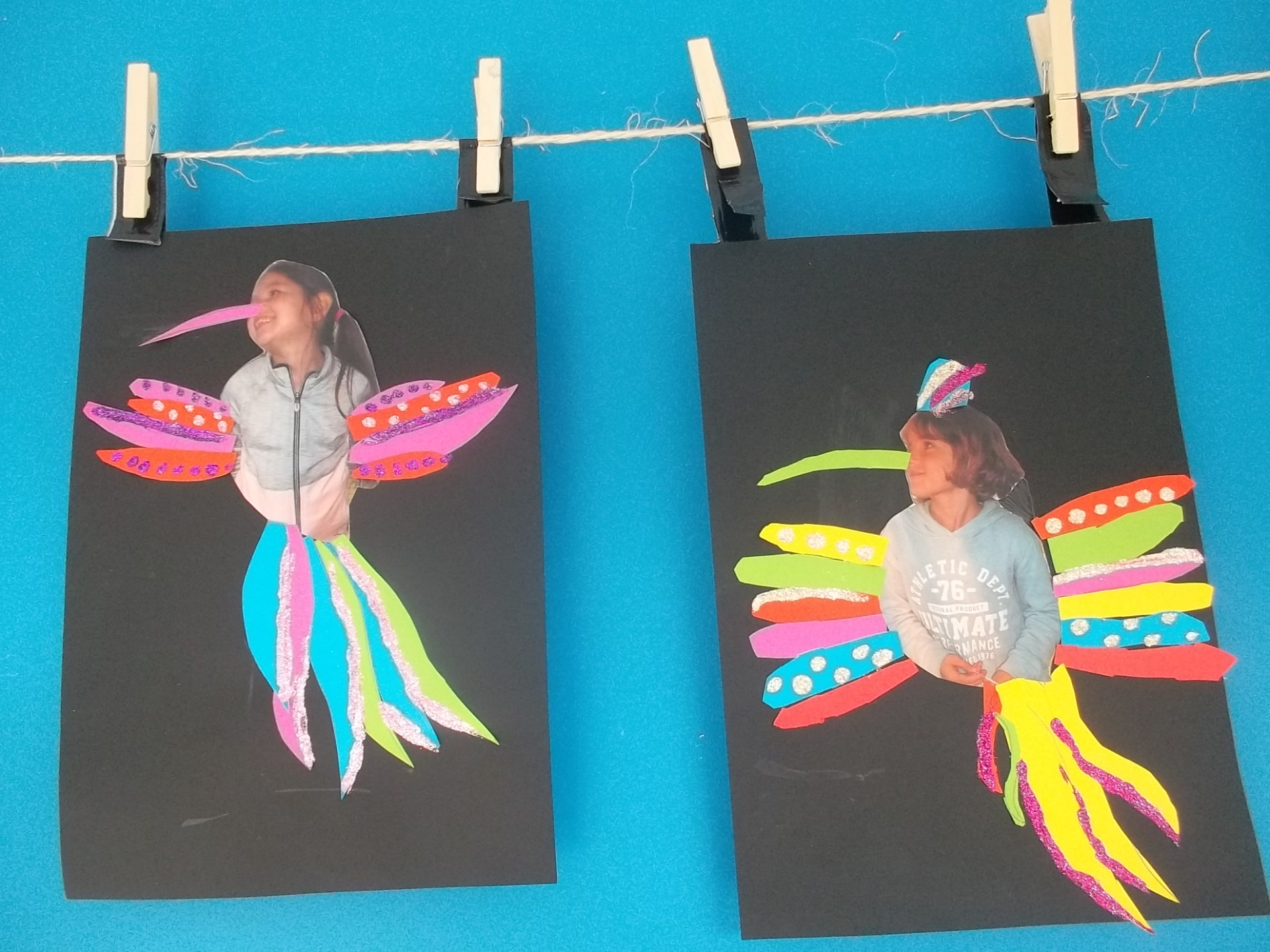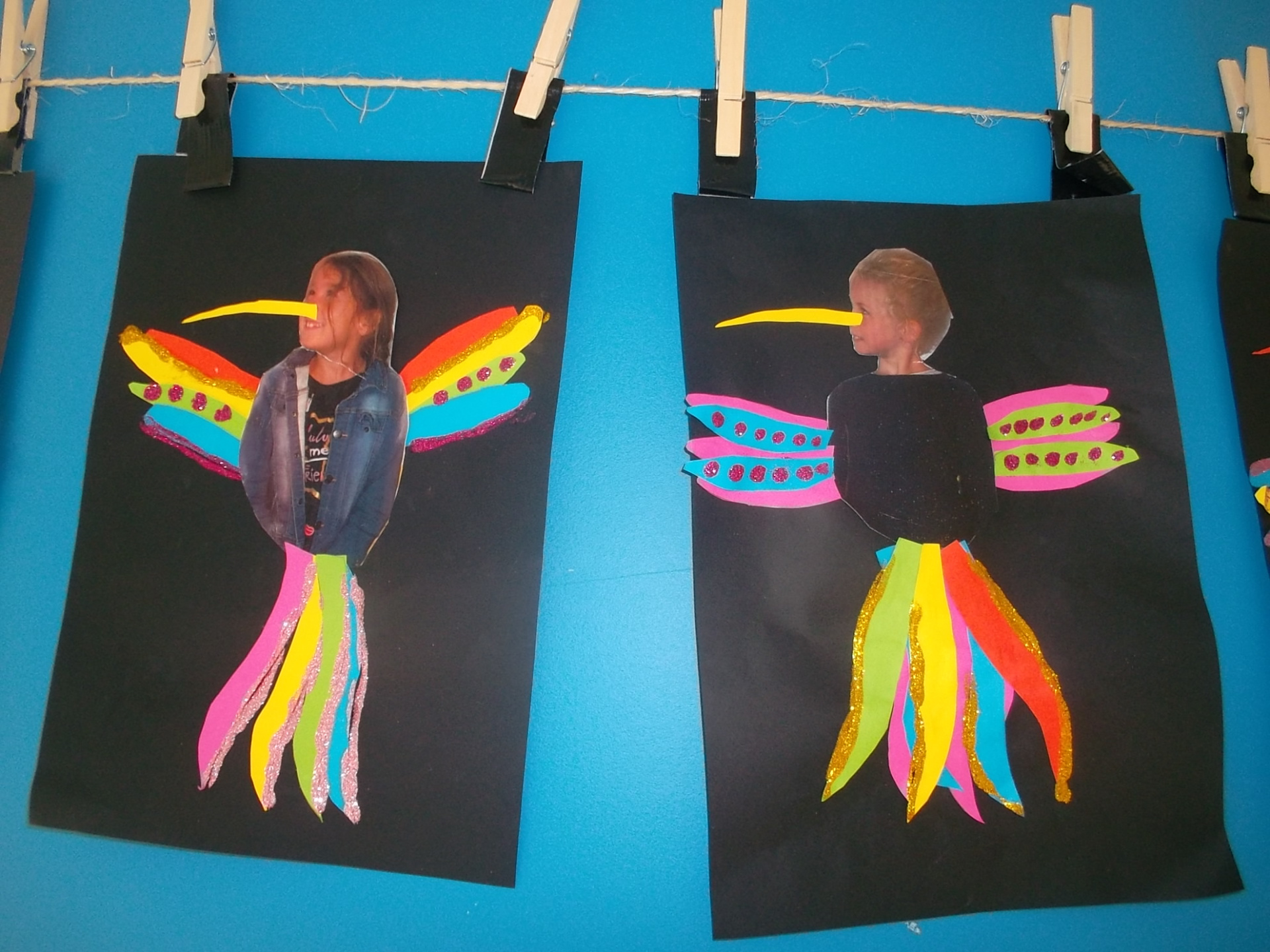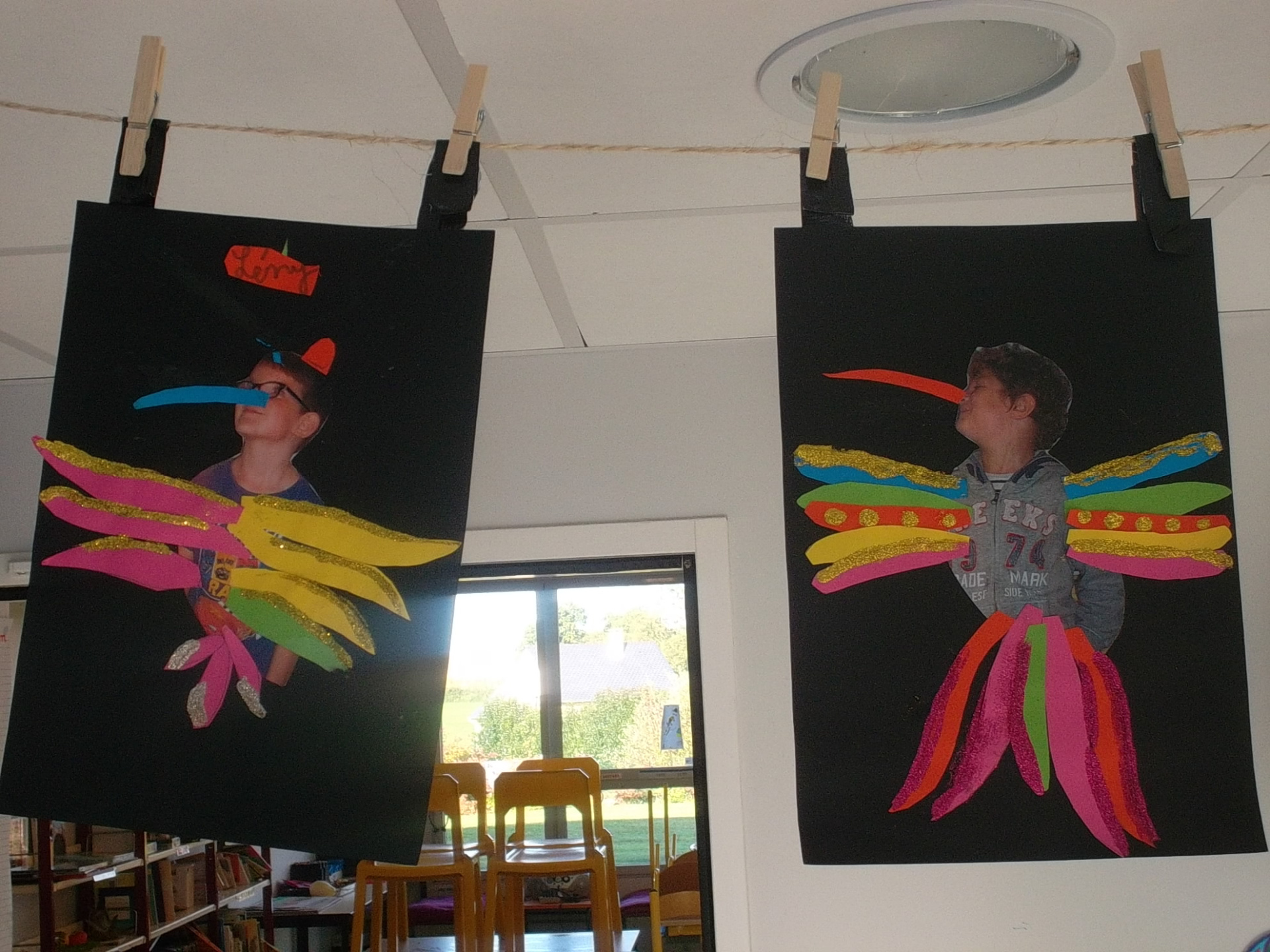 Nous avons lu la légende du colibri et les élèves ont voulu prendre exemple sur ce courageux petit oiseau en se transformant en colibris. Tous des colibris !