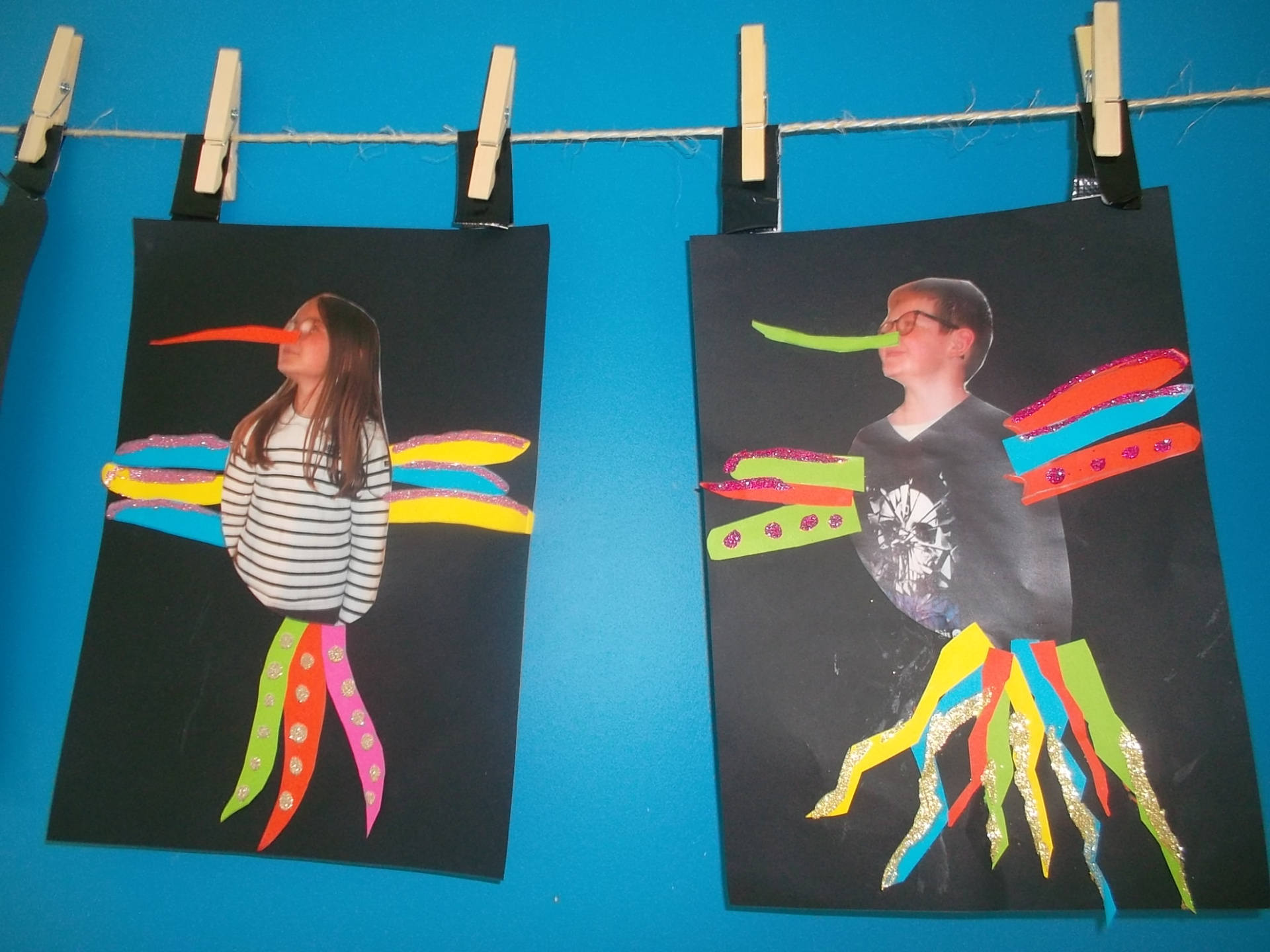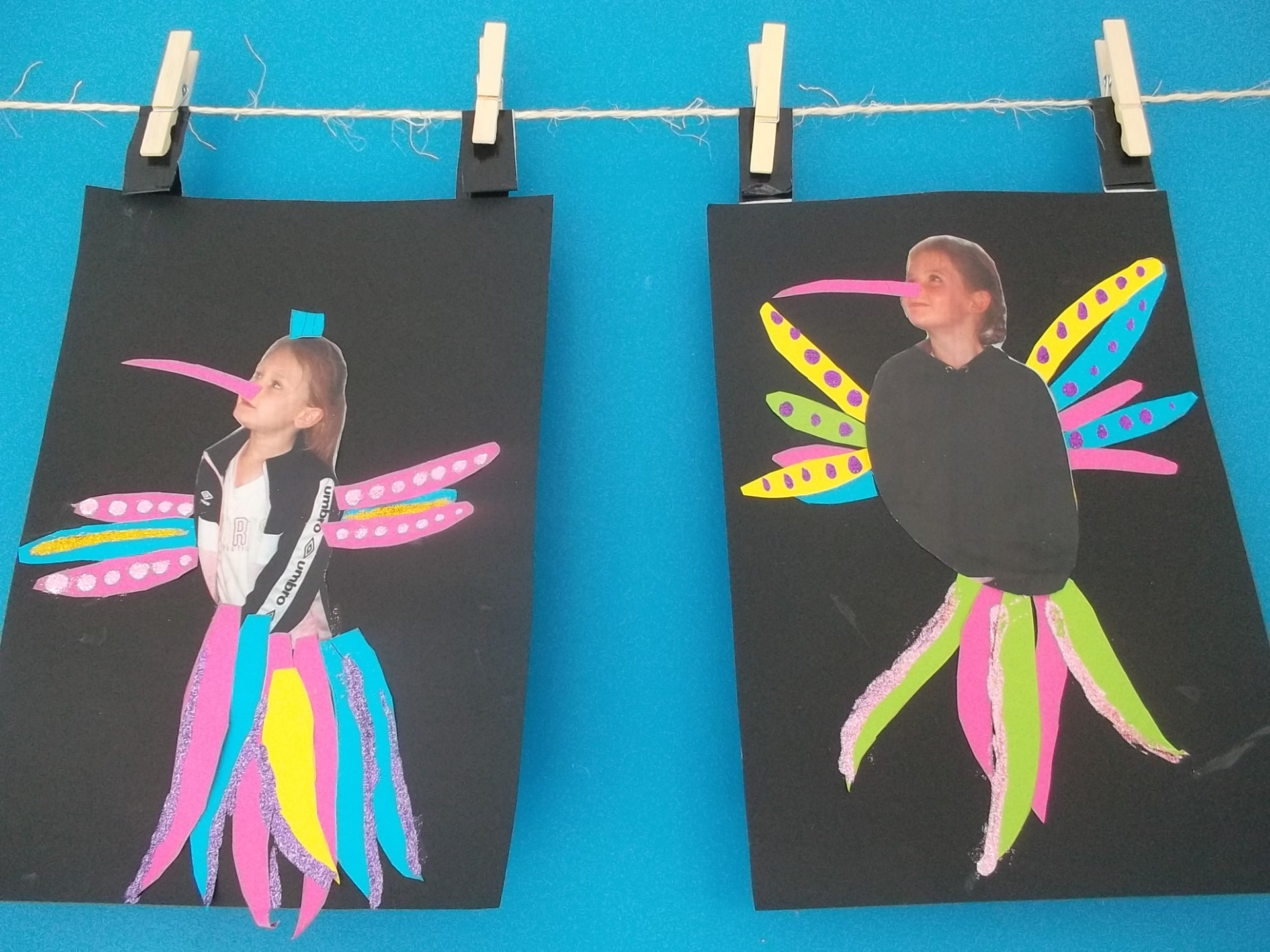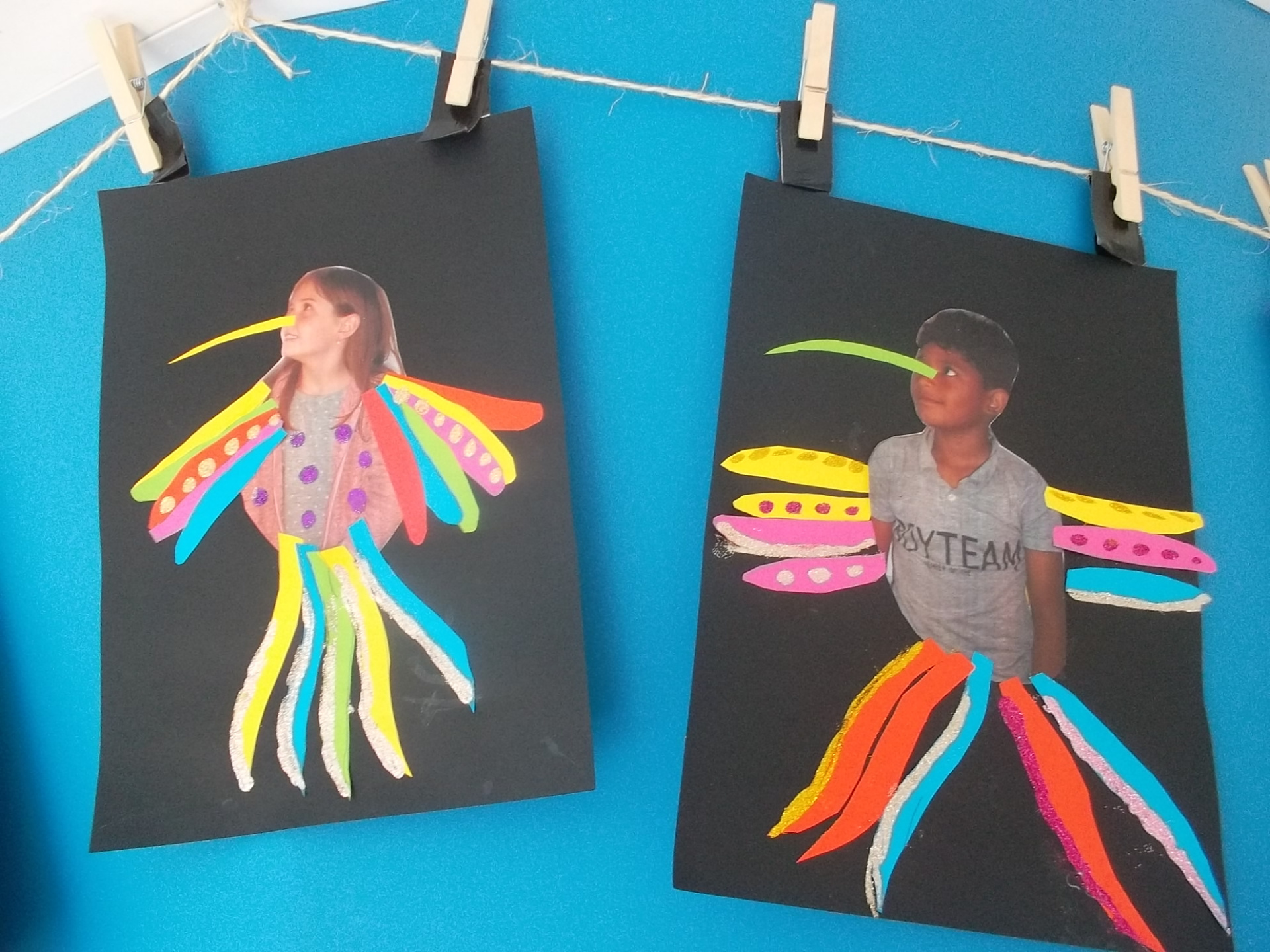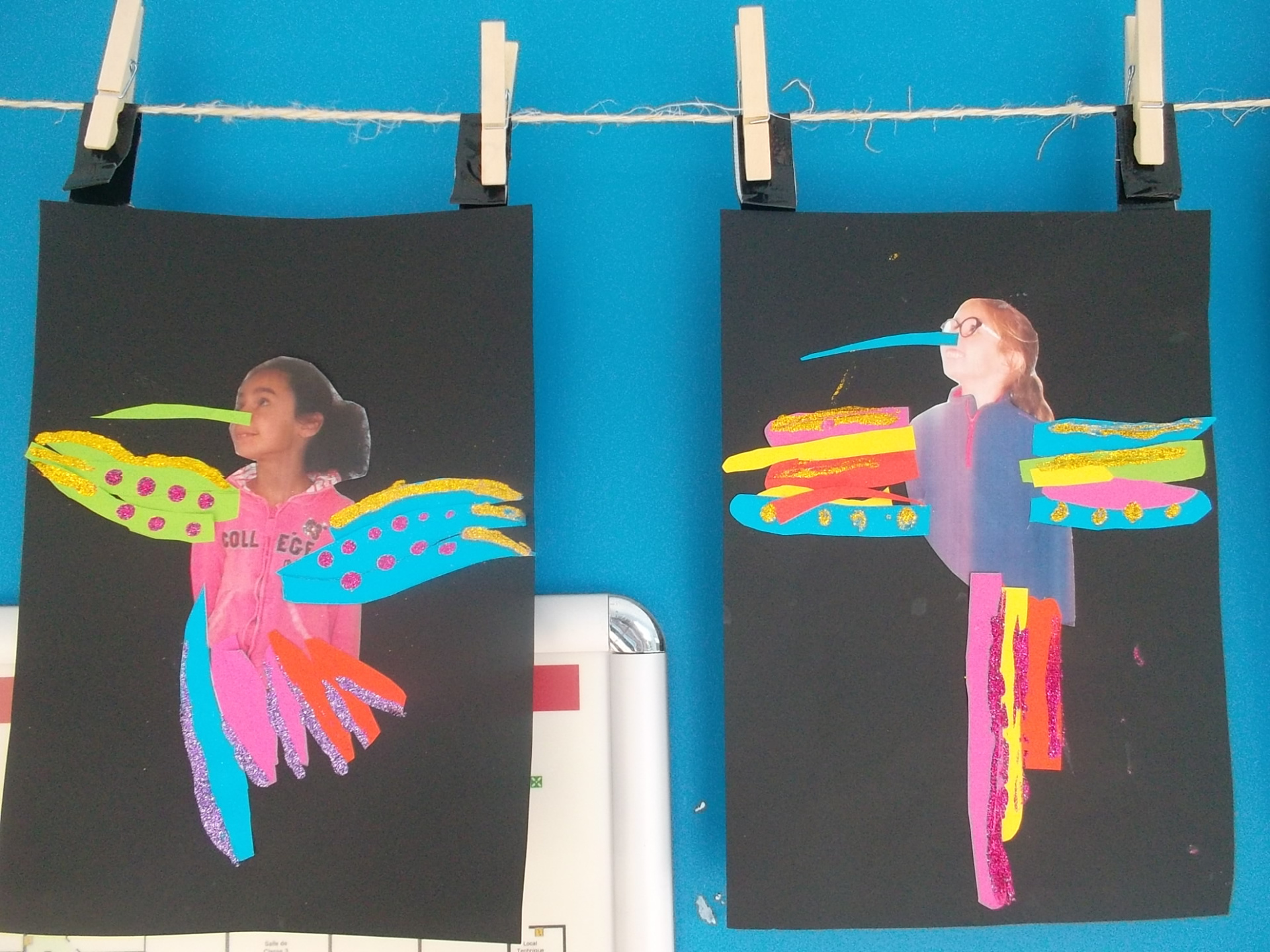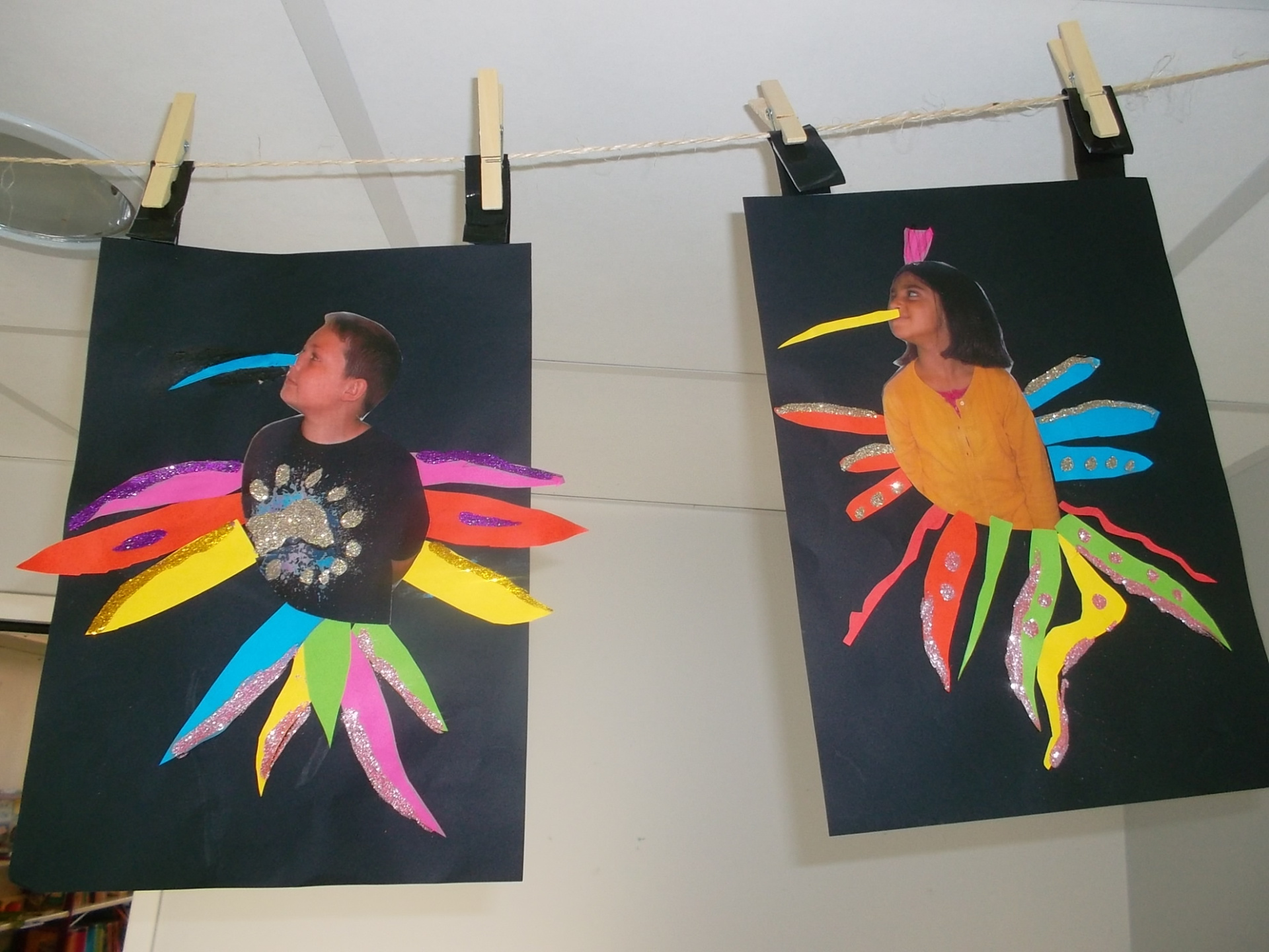 Nous avons lu la légende du colibri et les élèves ont voulu prendre exemple sur ce courageux petit oiseau en se transformant en colibris. Tous des colibris !