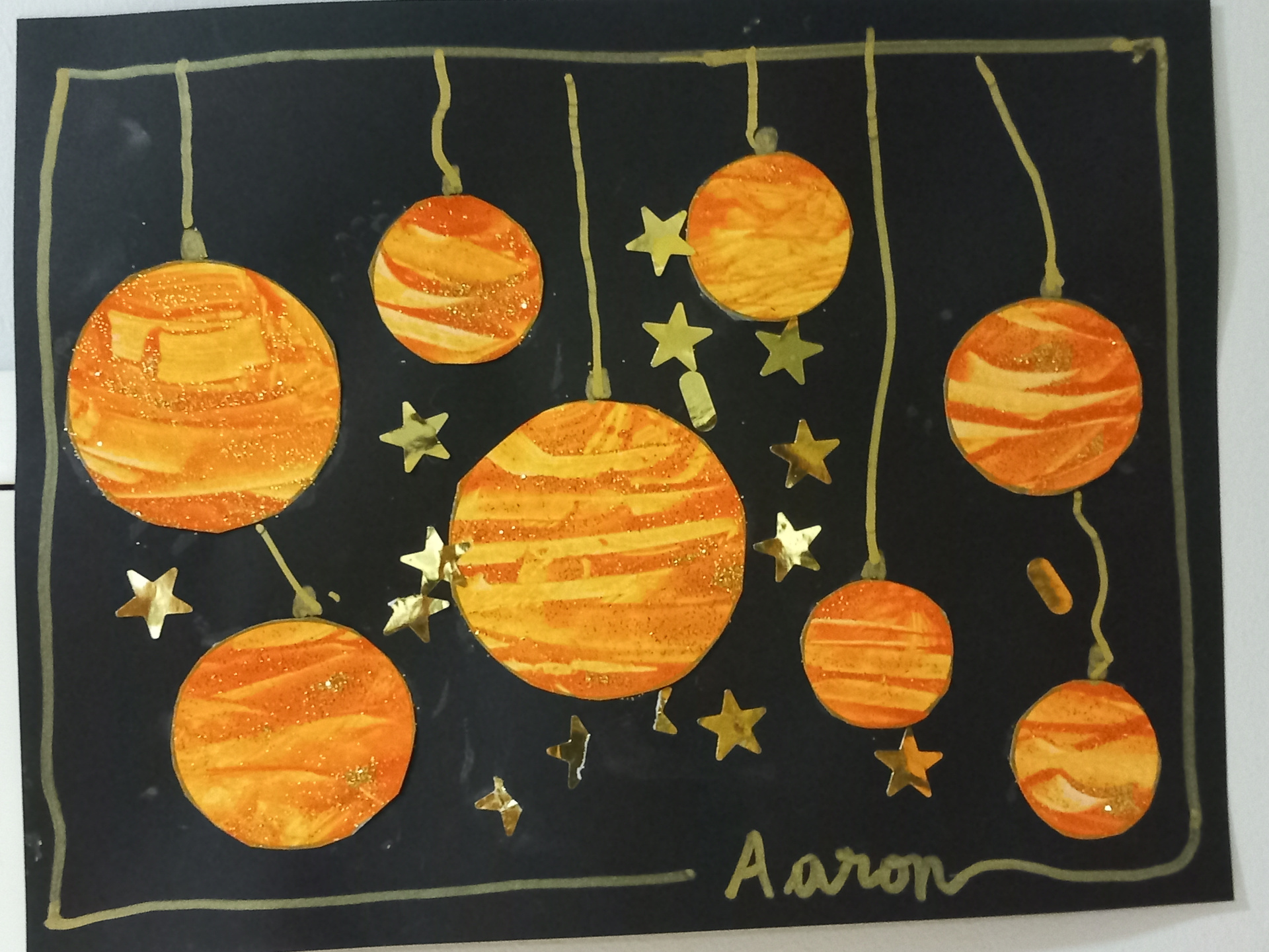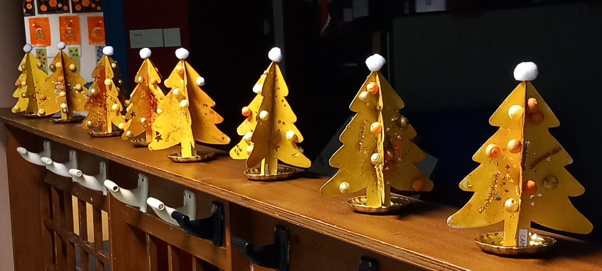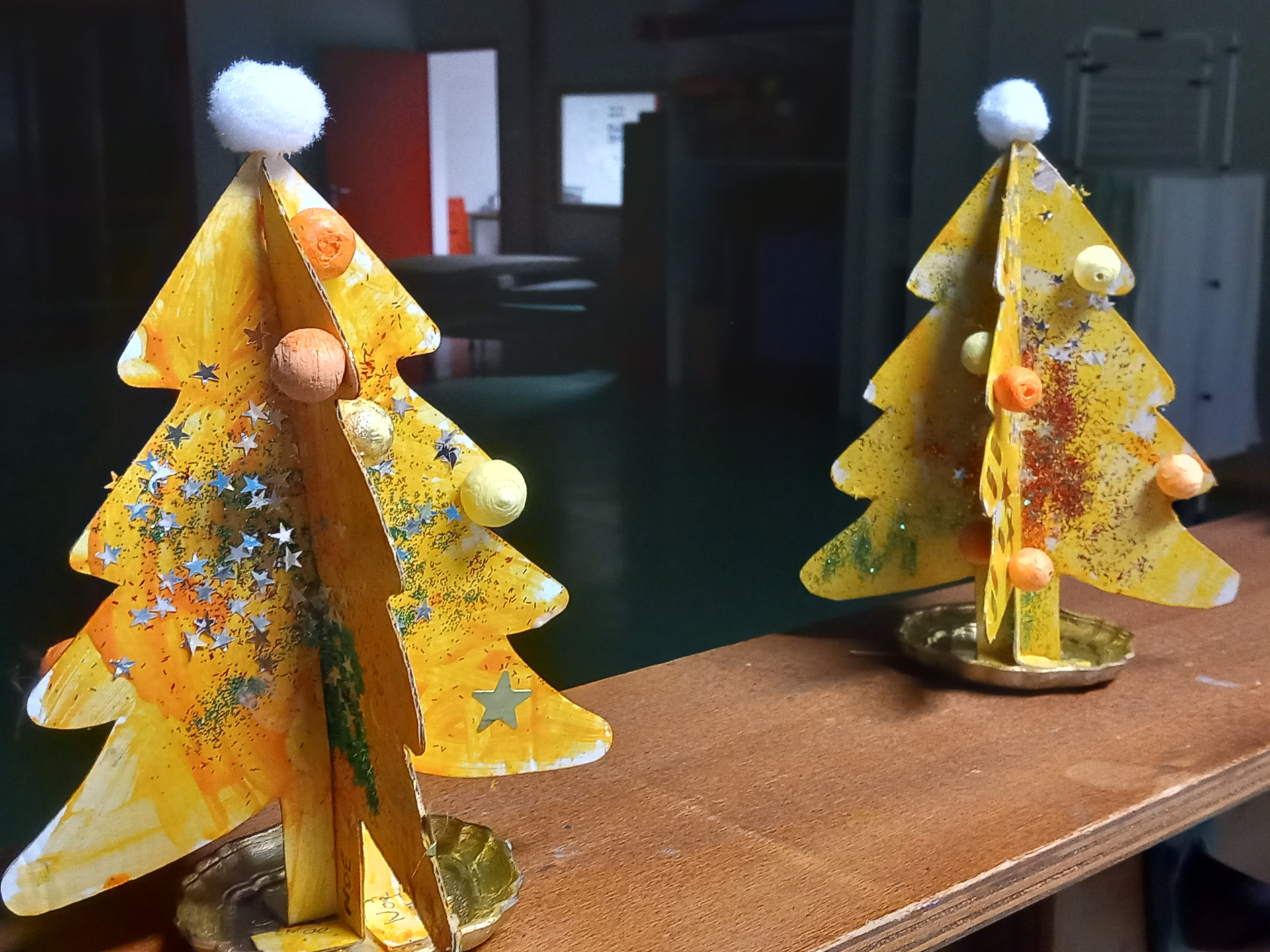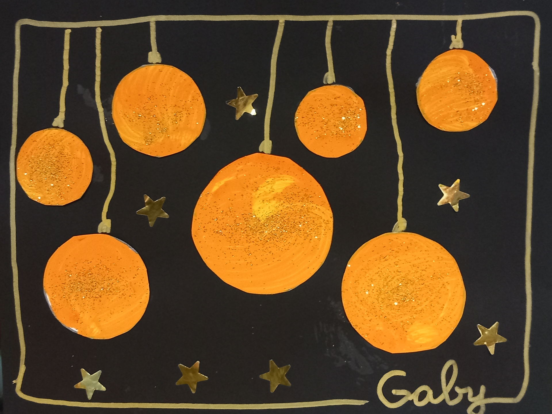 Cette année la couleur retenue pour le Noël des classes maternelles était le jaune/orange. Quelques productions des élèves pour ce Noël ensoleillé et pailleté !