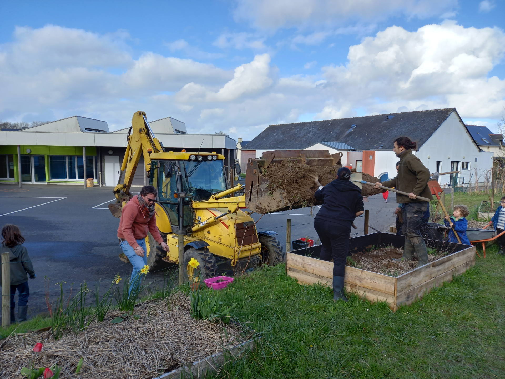 Pour la deuxième fois cette année, nous avons fait appel aux parents de l’école pour une soirée de jardinage participatif afin de nous aider à entretenir le potager de l’école. Lors d’une première session de jardinage à l’automne, nous avions nettoyé et préparé les carrés potagers pour l’hiver. Au programme cette-fois-ci : désherbage des fraisiers, remplacement des plantes de la butte qui n’ont pas passé l’hiver, plantation de framboisiers, apport de terre dans le bac qui a été réparé et agrandi, apport de compost,…