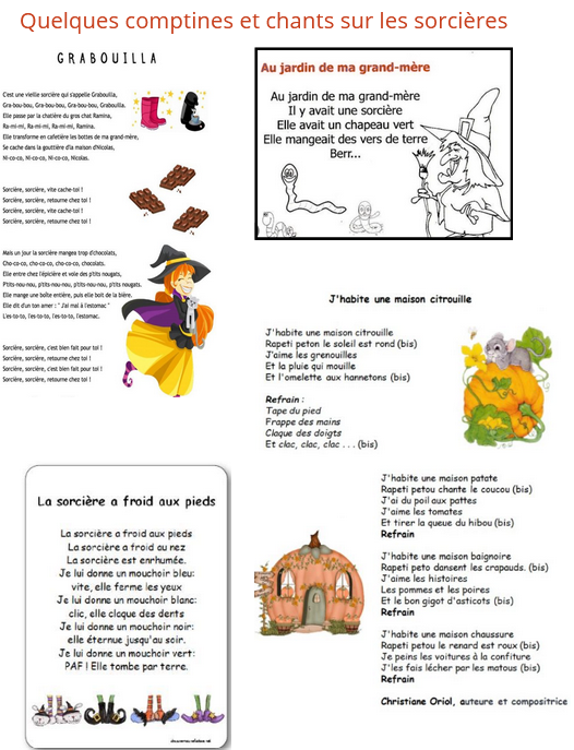 Après avoir beaucoup travaillé sur l’album « La sorcière dans les airs », nous avons lu bien d’autres histoires de sorcières. Nous avons aussi appris des chansons et réalisé quelques productions artistiques inspirées de nos lectures.