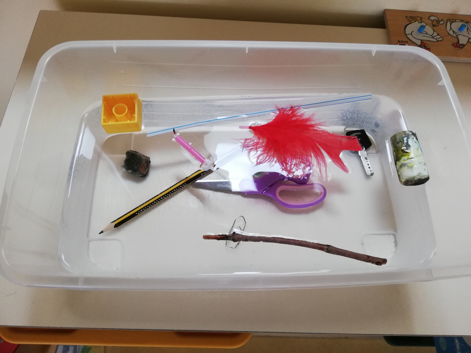 Pour cette première période, notre classe de TPS-PS-MS a travaillé sur le thème de l’eau. En Découverte du Monde, nous avons cherché des objets qui peuvent transporter de l’eau. Nous avons ensuite expérimenter pour vérifier nos propositions et faire un tri parmi les objets.